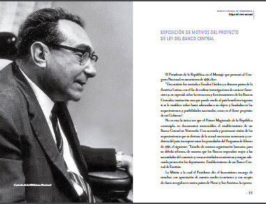 En 1939, la comisión encargada de llevar a cabo la propuesta de creación de un banco central hizo entrega de una propuesta de ley ante el Congreso de la República, en la cual se autorizaba la creación del de un instituto autónomo bancario nacional, con el fin de regular la circulación monetaria y el crédito, también para evitar fluctuaciones de la moneda; la misma debía asumir la función de regular y vigilar el comercio de oro y divisas. Se establecieron, entonces, las bases legales para el funcionamiento del Banco Central de Venezuela y a lo largo de estos ochenta años, los venezolanos hemos asistido a una economía de carácter centralista con fuerte presencia del Estado en asuntos financieros.